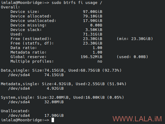 sudo btrfs fi usage /