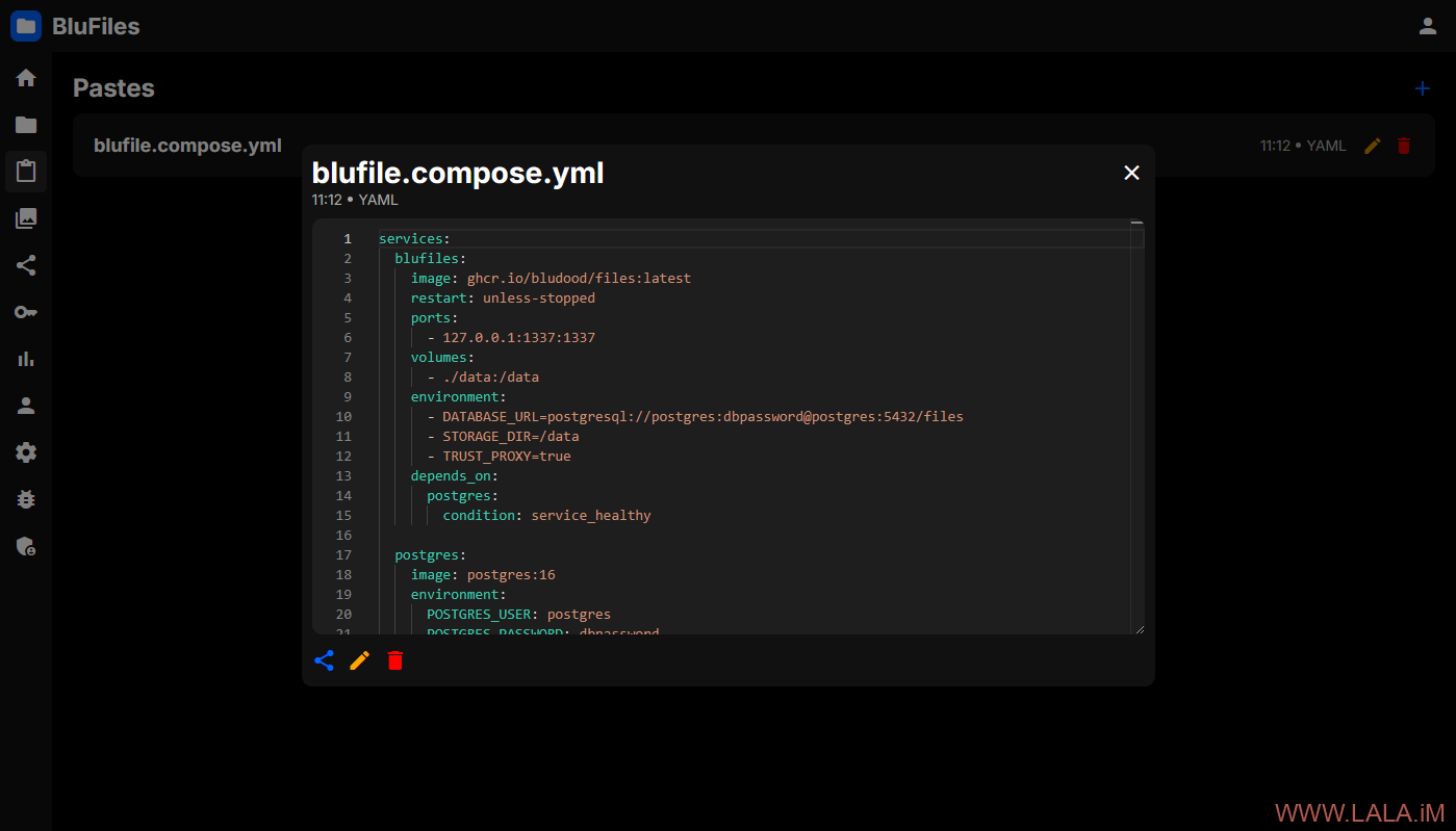 mkdir /opt/blufiles && cd /opt/blufiles && nano docker-compose.yml